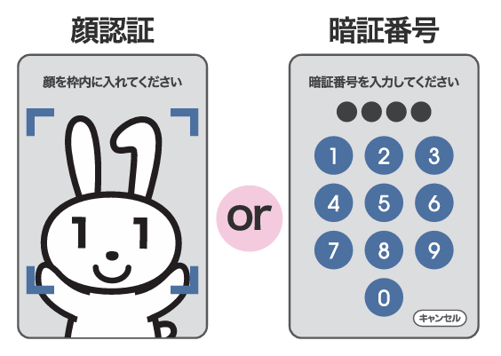 顔認証または4桁の暗証番号を入力してください。